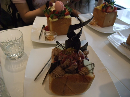 蜜糖土司算是店內的特色甜點,每個看起來都好漂亮!不過個人覺得有點太甜膩了,搭配茶或是兩人分食一份會比較好點。