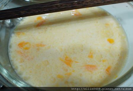 (下圖是第一次打的蛋液,應該要再打均勻點)