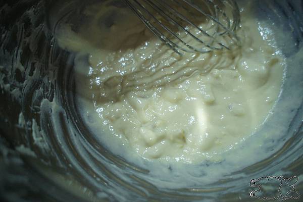 7.雞蛋打散分5-6次加入,每一次都要確實攪拌均勻才